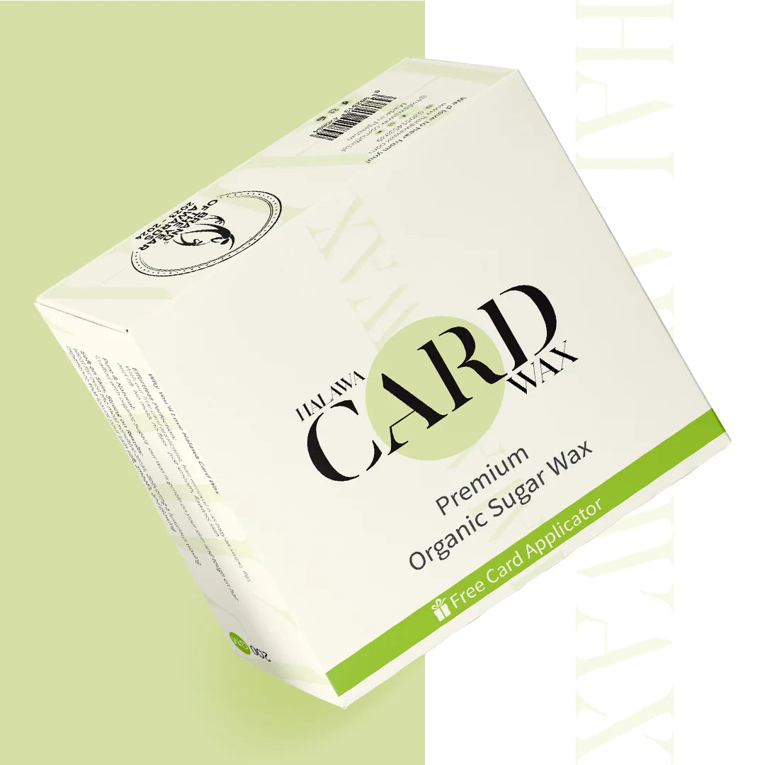 To use Halawa Card Wax, start with clean, dry skin. Take the included card applicator and scoop some wax. Apply it in the direction of hair growth. Then, flip the card and quickly pull off in the opposite direction for a smooth finish. After waxing, avoid washing the area with water to prevent any irritation; instead, apply Halawa Wax Alovera Pure Gel to soothe the skin.